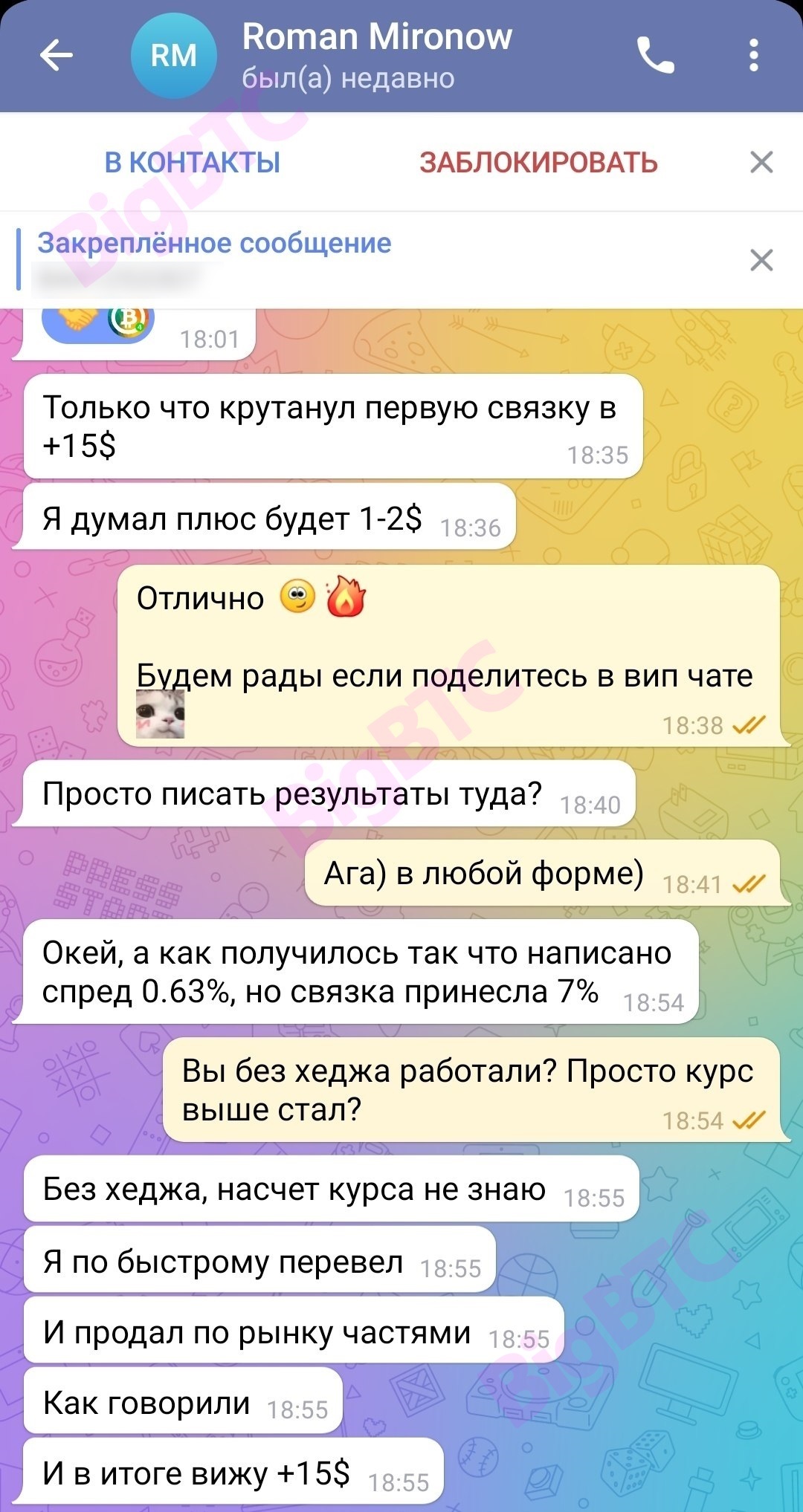 Только что крутанул первую связку в +15$ Я думал плюс будет 1-2$ Отлично 👌🔥 Будем рады если поделитесь в вип чате Просто писать результаты туда? Ага) в любой форме) Окей, а как получилось так что написано спред 0.63%, но связка принесла 7% Вы без хеджа работали? Просто курс выше стал? Без хеджа, насчет курса не знаю Я по быстрому перевел И продал по рынку частями Как говорили И в итоге вижу +15$