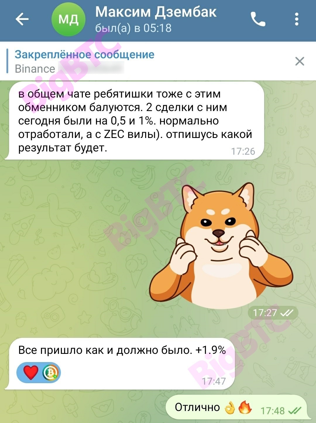 в общем чате ребятишки тоже с этим обменником балуются. 2 сделки с ним сегодня были на 0,5 и 1%. нормально отработали, а с ZEC вилы). отпишусь какой результат будет. Все пришло как и должно было. +1.9% Отлично 👌🔥