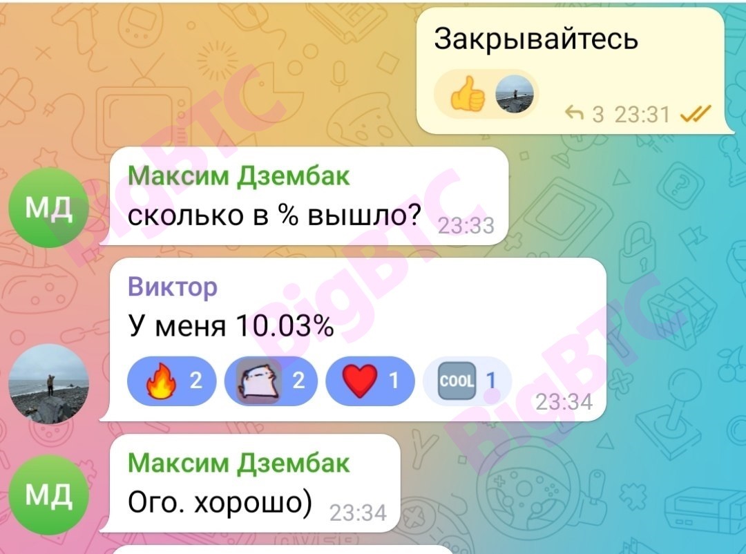 Закрывайтесь сколько в % вышло? У меня 10.03% Ого. хорошо)