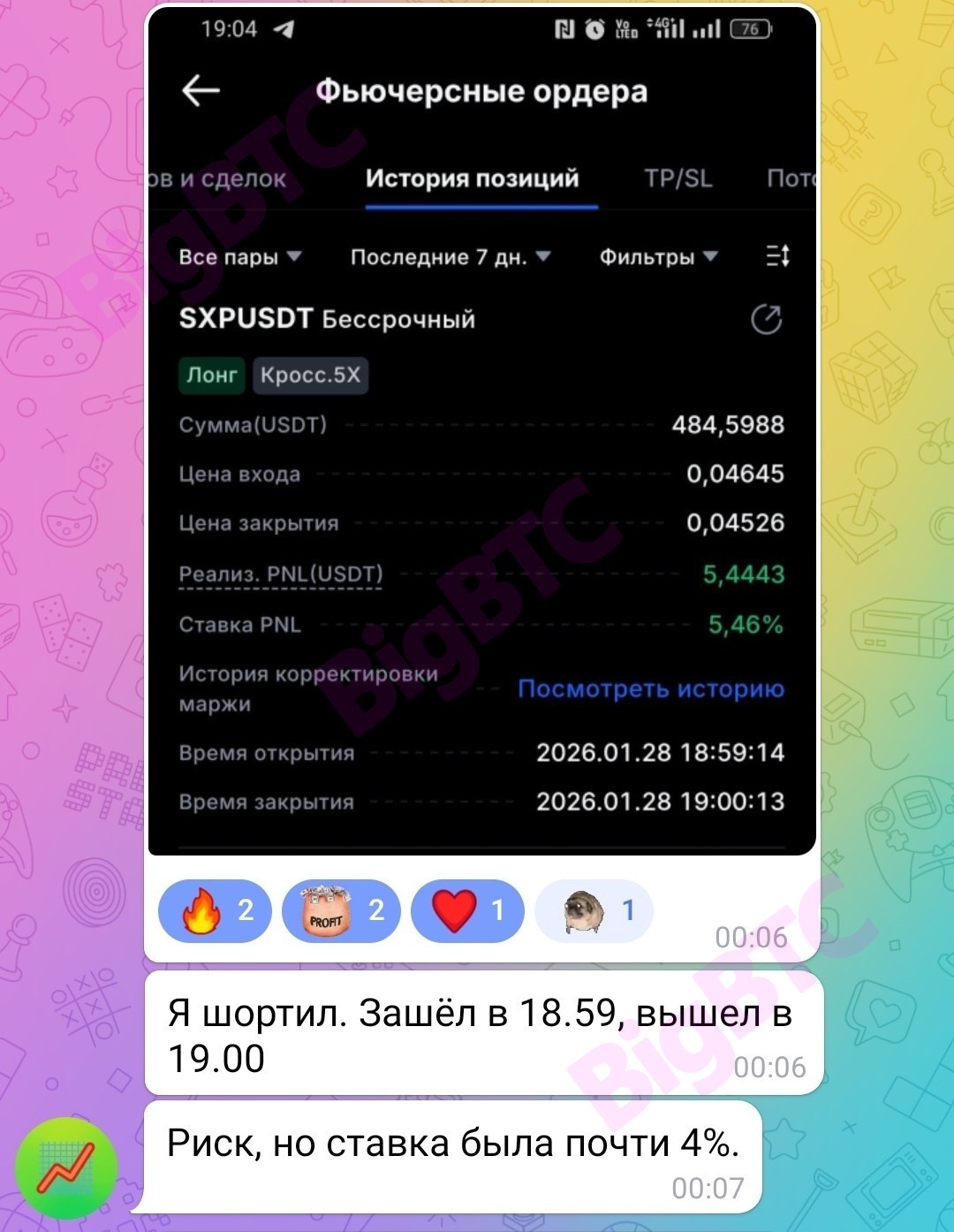 Я шортил. Зашёл в 18.59, вышел в 19.00 Риск, но ставка была почти 4%.
