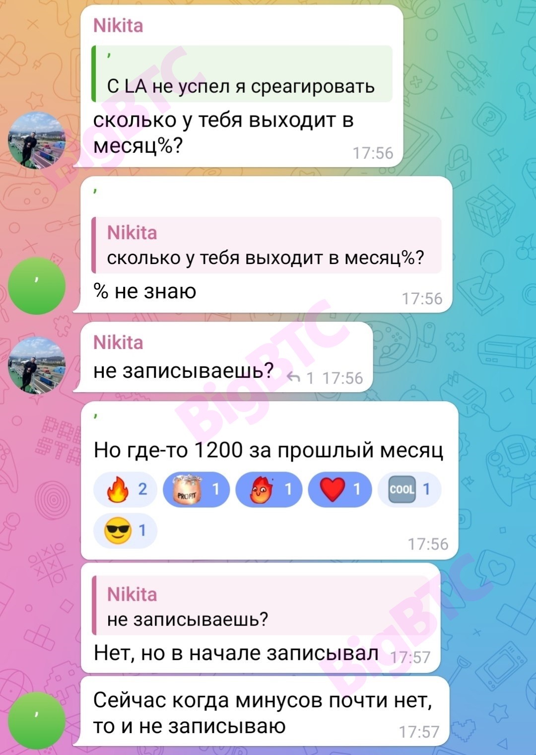 сколько у тебя выходит в месяц%? не знаю не записываешь? Но где-то 1200 за прошлый месяц Нет, но в начале записывал Сейчас когда минусов почти нет, то и не записываю
