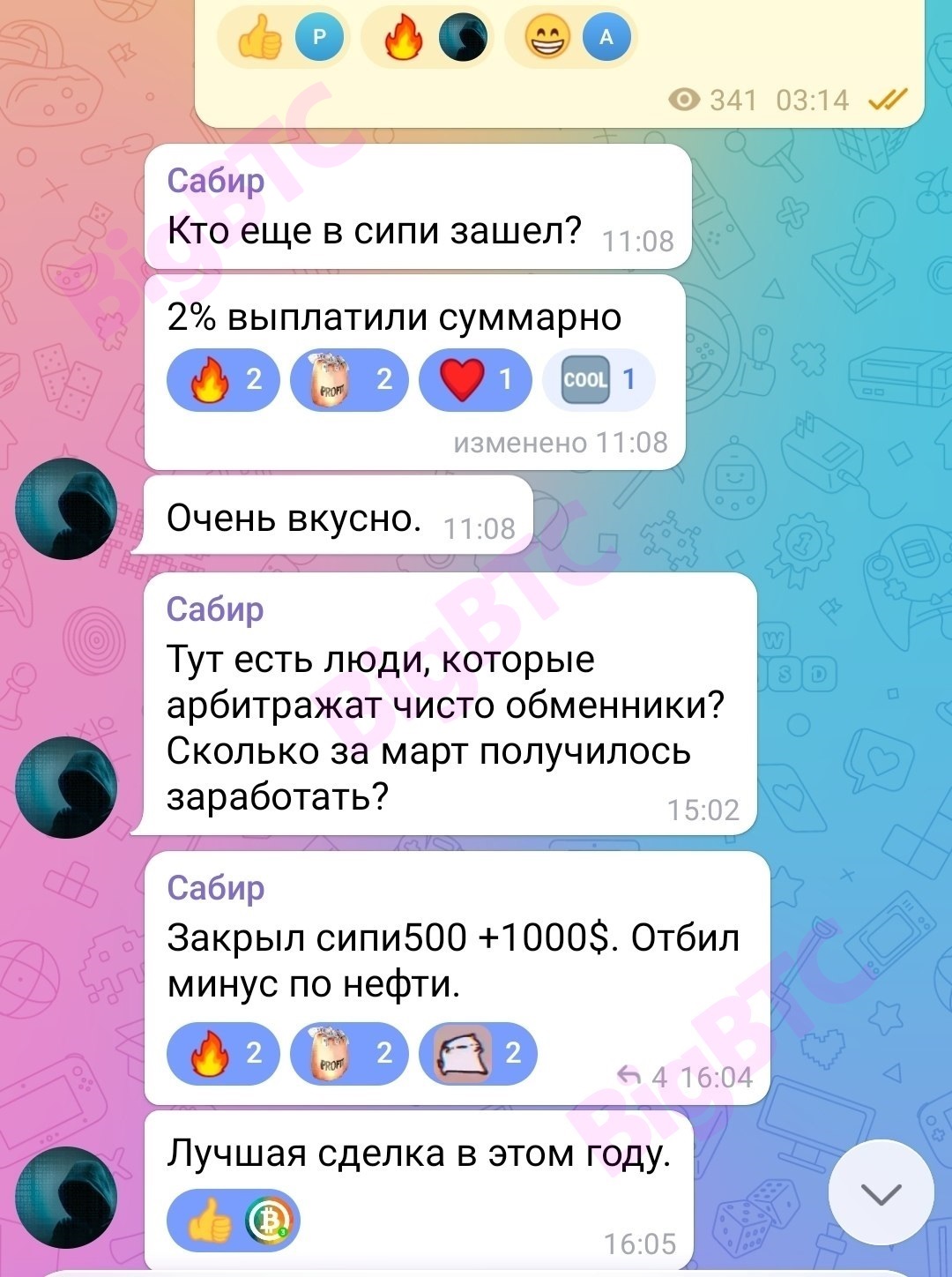 Кто еще в сипи зашел? 2% выплатили суммарно Очень вкусно. Тут есть люди, которые арбитражат чисто обменники? Сколько за март получилось заработать? Закрыл сипи500 +1000$. Отбил минус по нефти. Лучшая сделка в этом году.