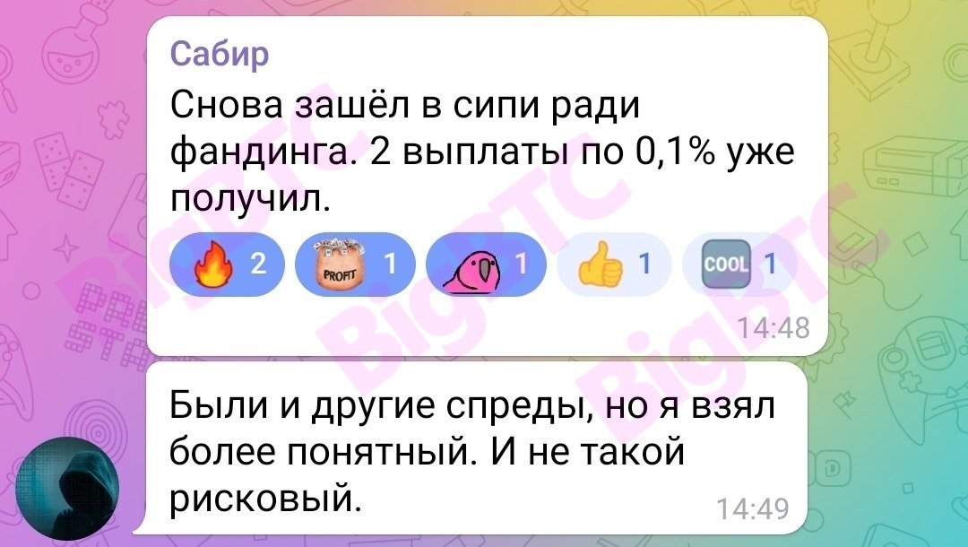 Тоже заходил на нее +5% спреда и фандинг забрал